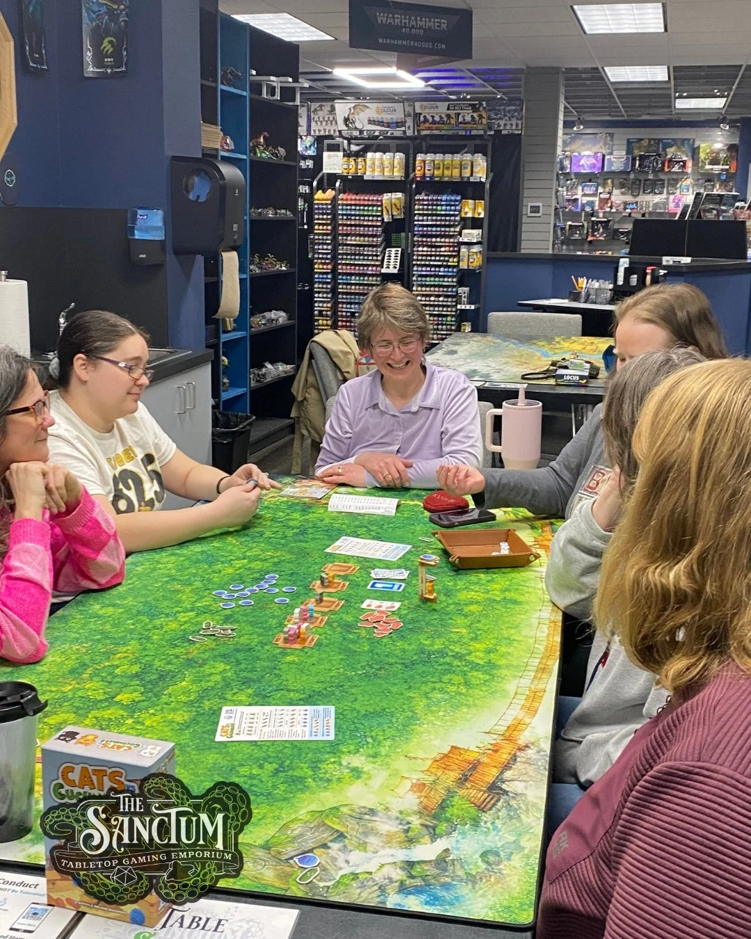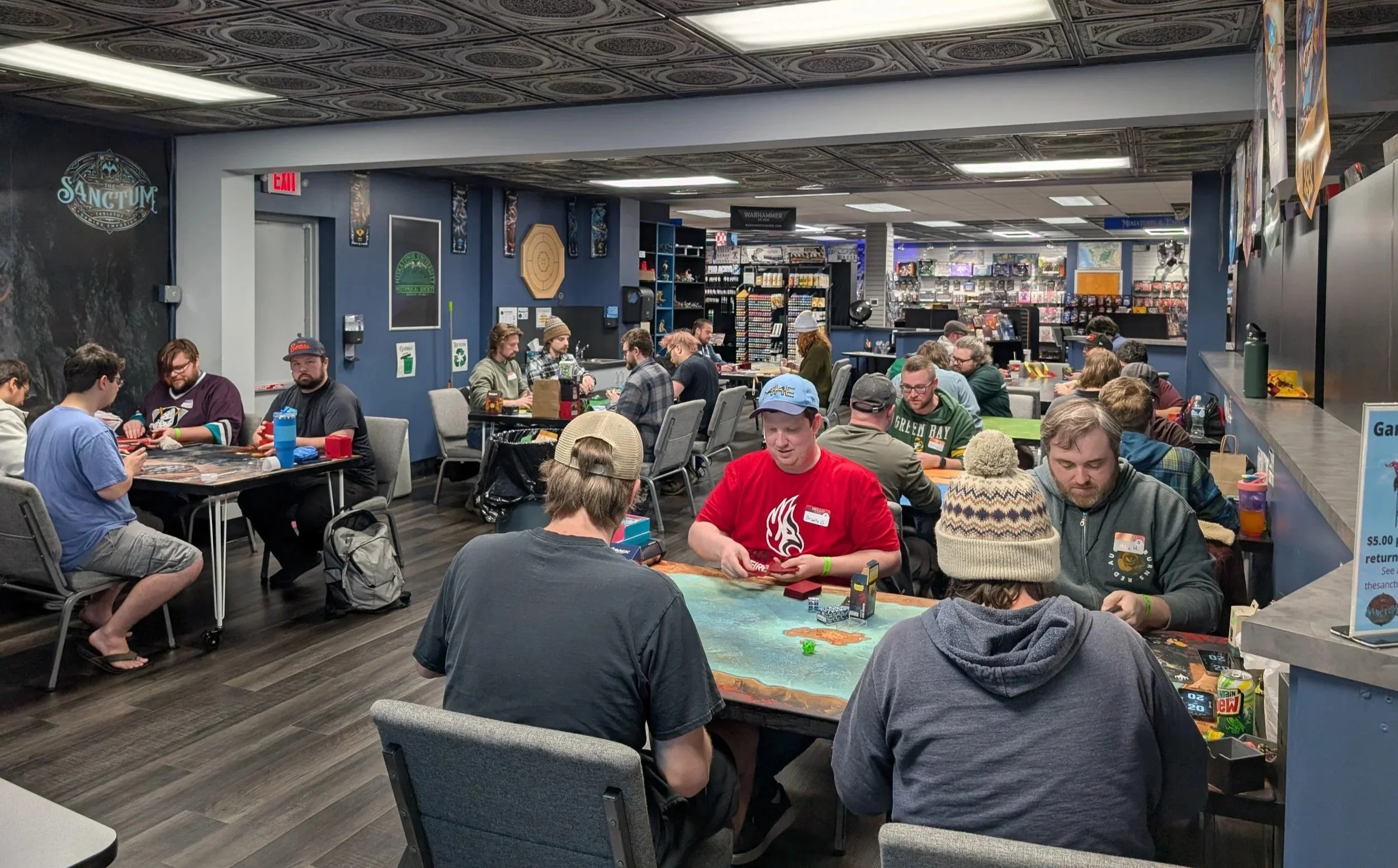 The Sanctum Tabletop Gaming Emporium is a friendly local game store located in Racine, Wisconsin! Whether you're an experienced gamer or new to the hobby, you will be impressed by our spacious shopping area and wide selection of board games, card games, D&D or other RPGs, miniatures(including Warhammer), dice, and gaming accessories.
